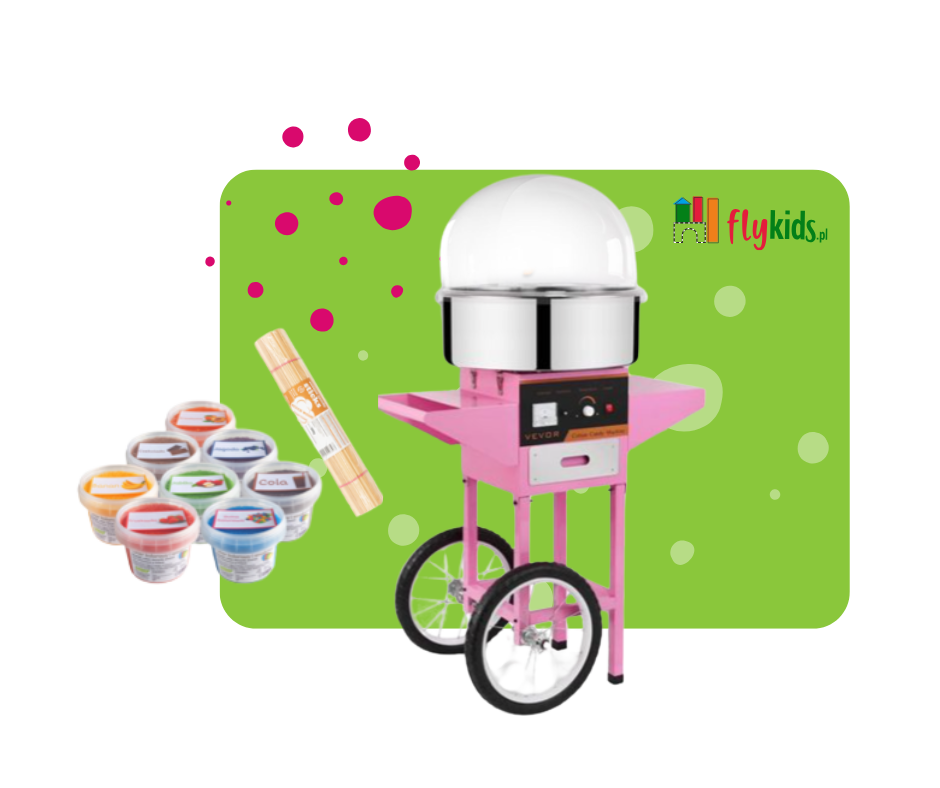 Nasza profesjonalna maszyna do waty cukrowej jest idealnym dodatkiem do imprez rodzinnych, urodzin, komunii i festynów.
