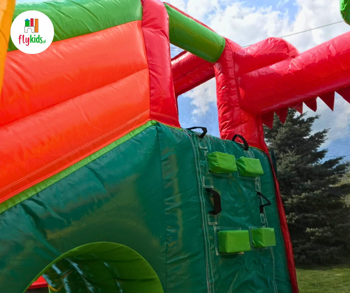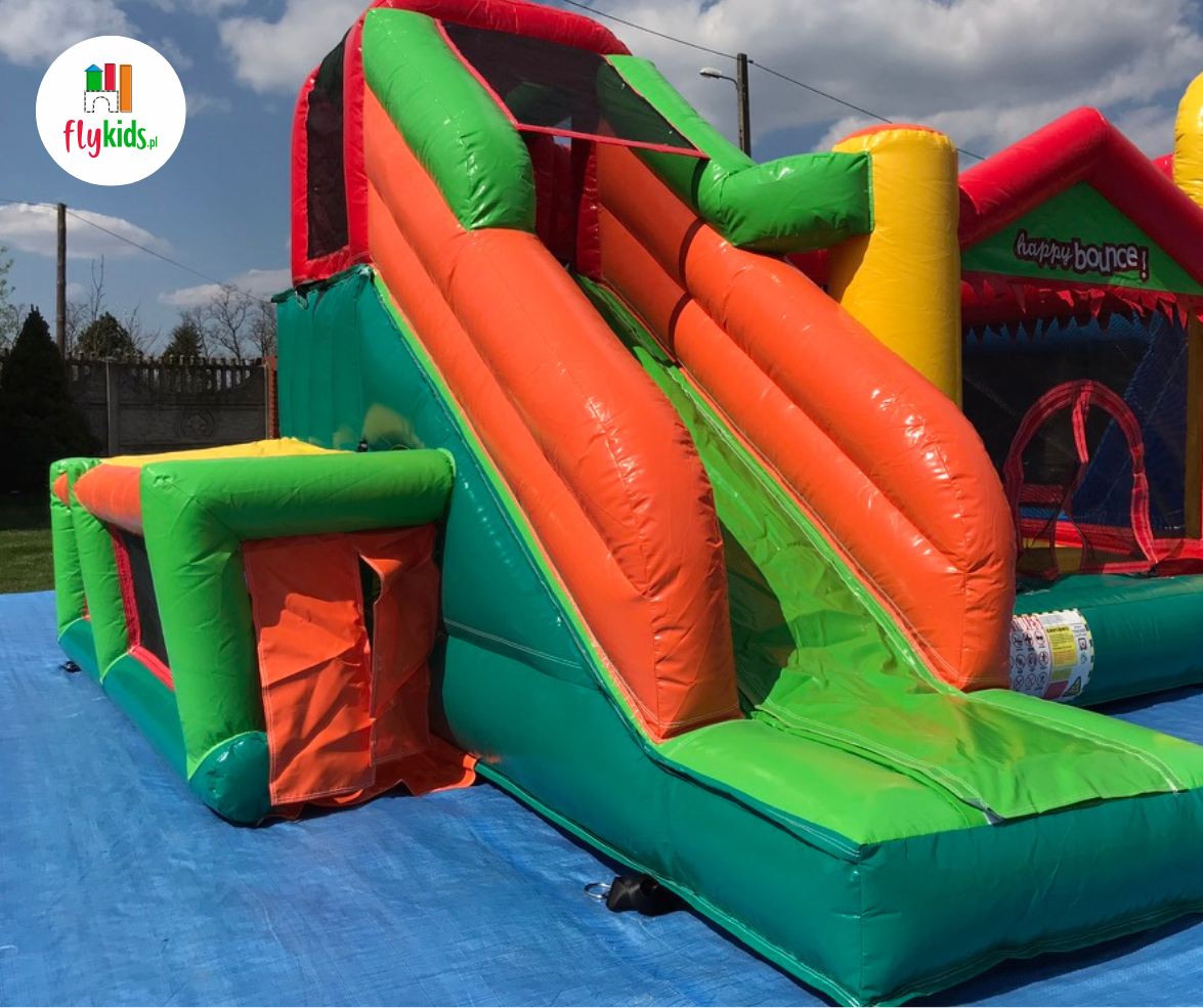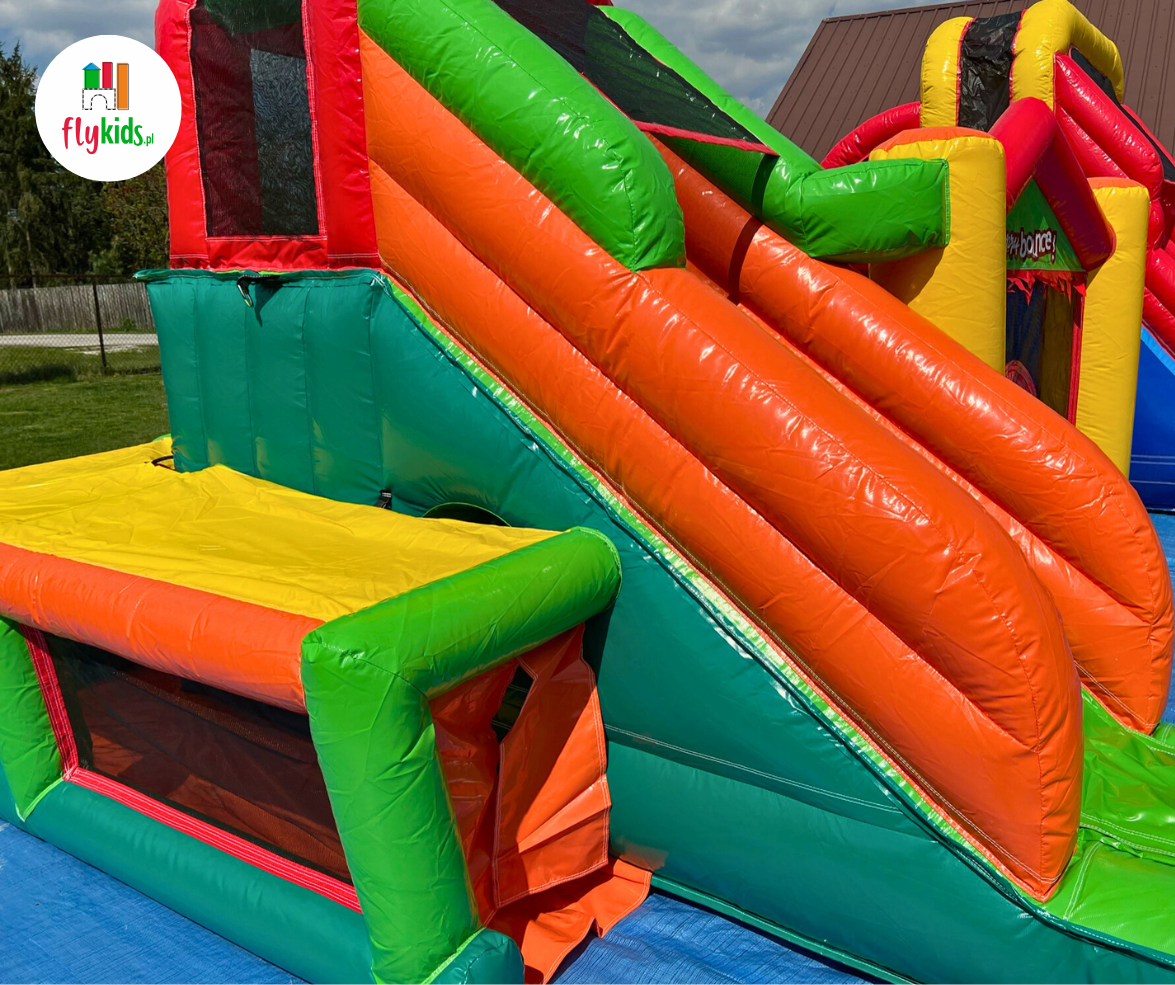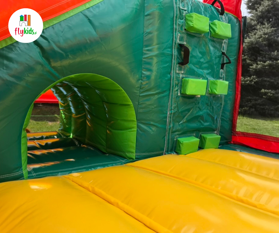 – dmuchaniec z trampoliną, ścianką wspinaczkową i zjeżdżalnią